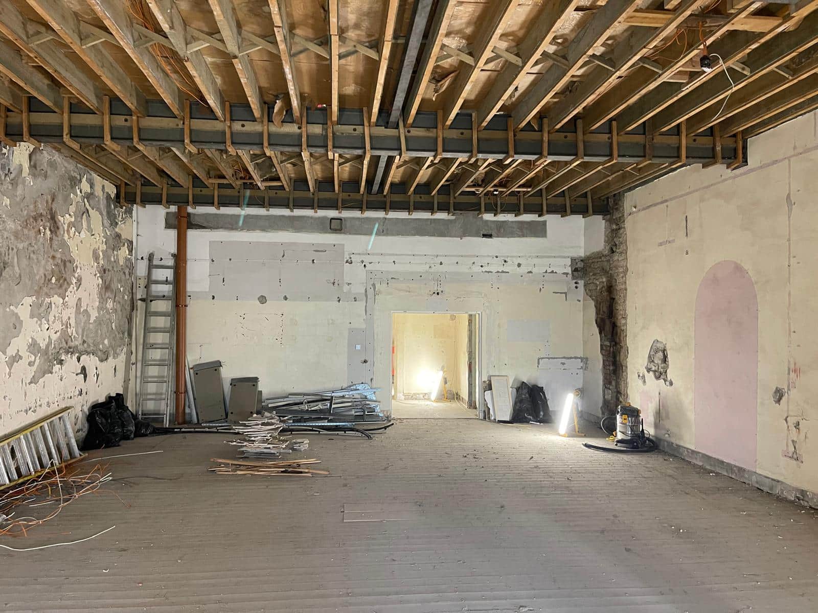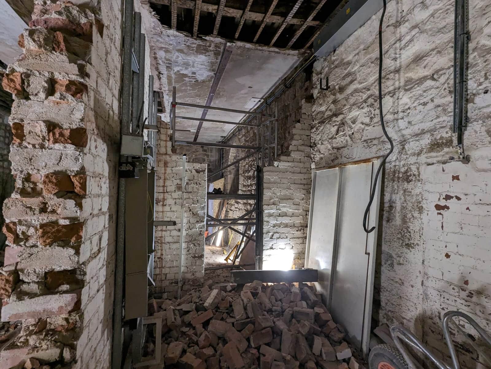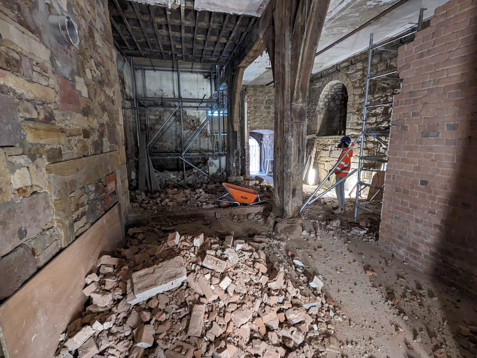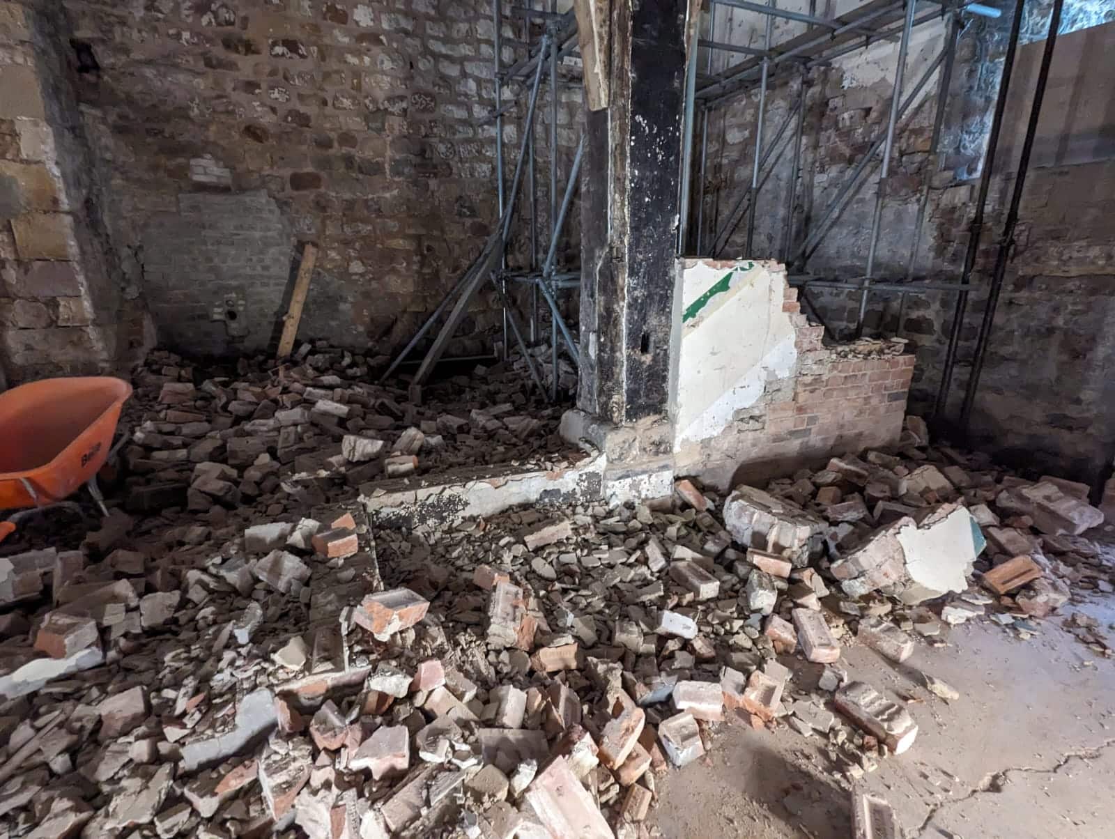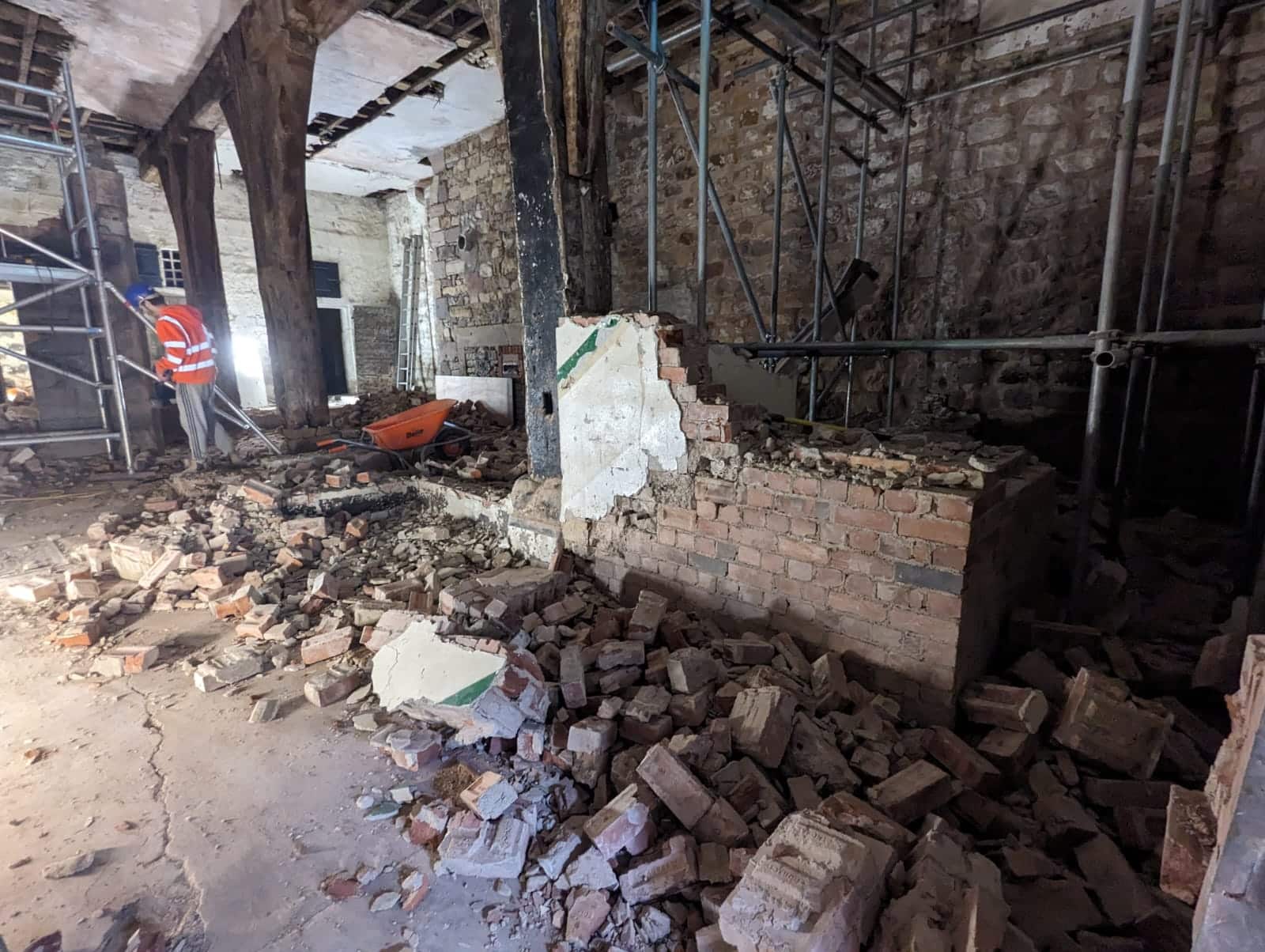 Our scope included internal demolition, foundation installations, drainage upgrades and gully works, along with external flagging and the restoration of historic pathways. Much of the programme focused on demolition and preparation, including extensive stripping out of old materials and the careful removal of existing structures. We also re-laid large paving slabs, preparing suitable sub-bases to ensure long-term stability.
