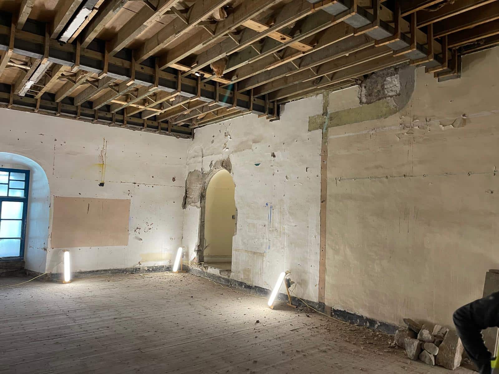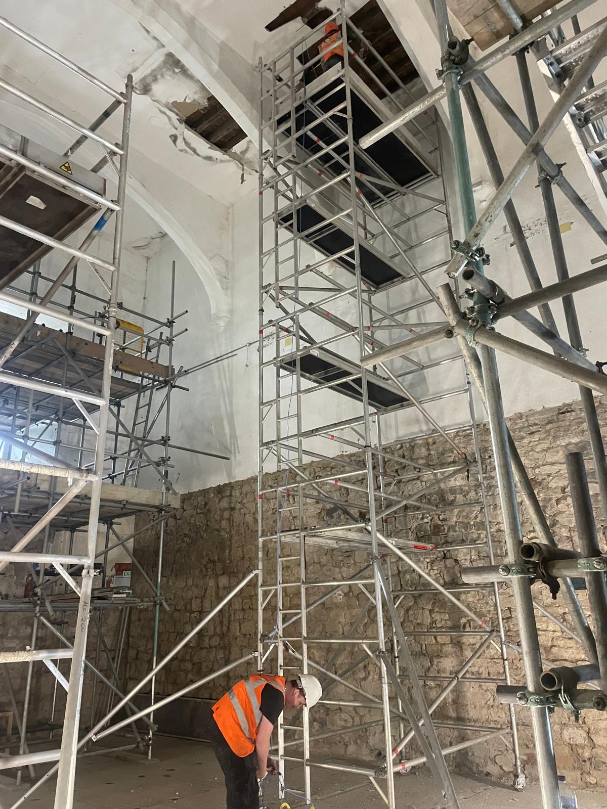 Additional works included drainage repairs, excavation of trenches for new cable ducting, and the construction of a structural raft foundation to support the installation of a new oak staircase. All works were carried out in stages to maintain structural stability and minimise disruption to the integrity of the castle, successfully combining modern construction methods with traditional materials while preserving its historic character.